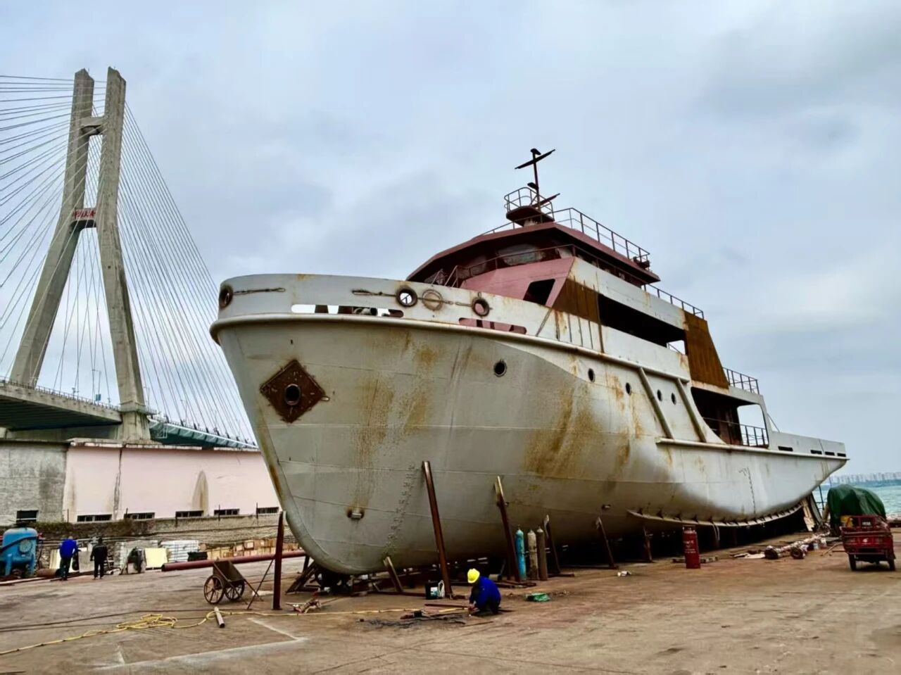 考察期間,調研組深入了解該集團多功能漁業(yè)輔助船的設計理念與功能集成。該船舶集生產輔助、生活服務、起重作業(yè)、冷鏈儲運于一體,配備三層上層建筑,集成會議室、餐廳、乘員艙等設施,能滿足海上作業(yè)人員的多方面需求。其甲板后部設置的起重設備適用于多種海上施工與起吊作業(yè),而艙內特別增設的具備冷凍設施的魚艙,有效提升了漁獲物保鮮儲運能力,體現(xiàn)了現(xiàn)代漁業(yè)裝備向高效、節(jié)能、多功能方向的升級趨勢。其設計不僅提升了海上作業(yè)綜合保障能力,也為茂名完善海洋牧場配套設施、構建陸海聯(lián)動服務體系提供了新思路。